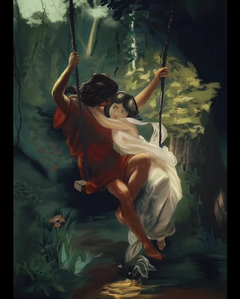 Queer versions of classical paintings staring Yumi and Sana from Summer of Seoul